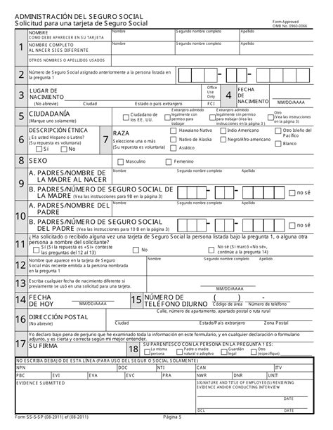 Form Ss 5 Sp - ¡solicitar una tarjeta de seguro social es gratis! If you cannot use our online services to get a replacement social security card, you must visit a social security ofice or card center. Solicitud para una tarjeta de seguro social. You must provide supporting documents that prove your.